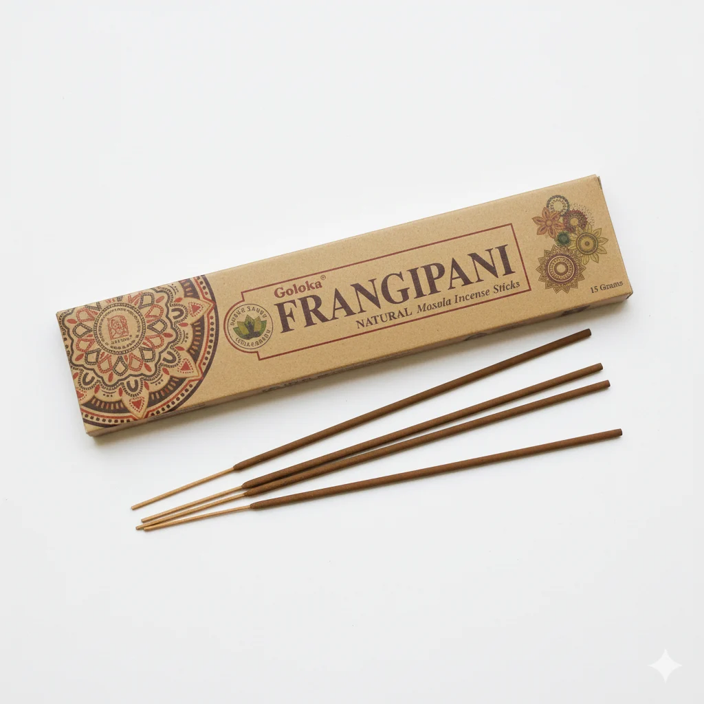 Sumérgete en el exótico aroma de Frangipani con este incienso de masala natural de Goloka. Conocido por sus propiedades calmantes y su fragancia embriagadora, el Frangipani invita a la tranquilidad y la positividad, haciendo de cada uso una experiencia rejuvenecedora y placentera.