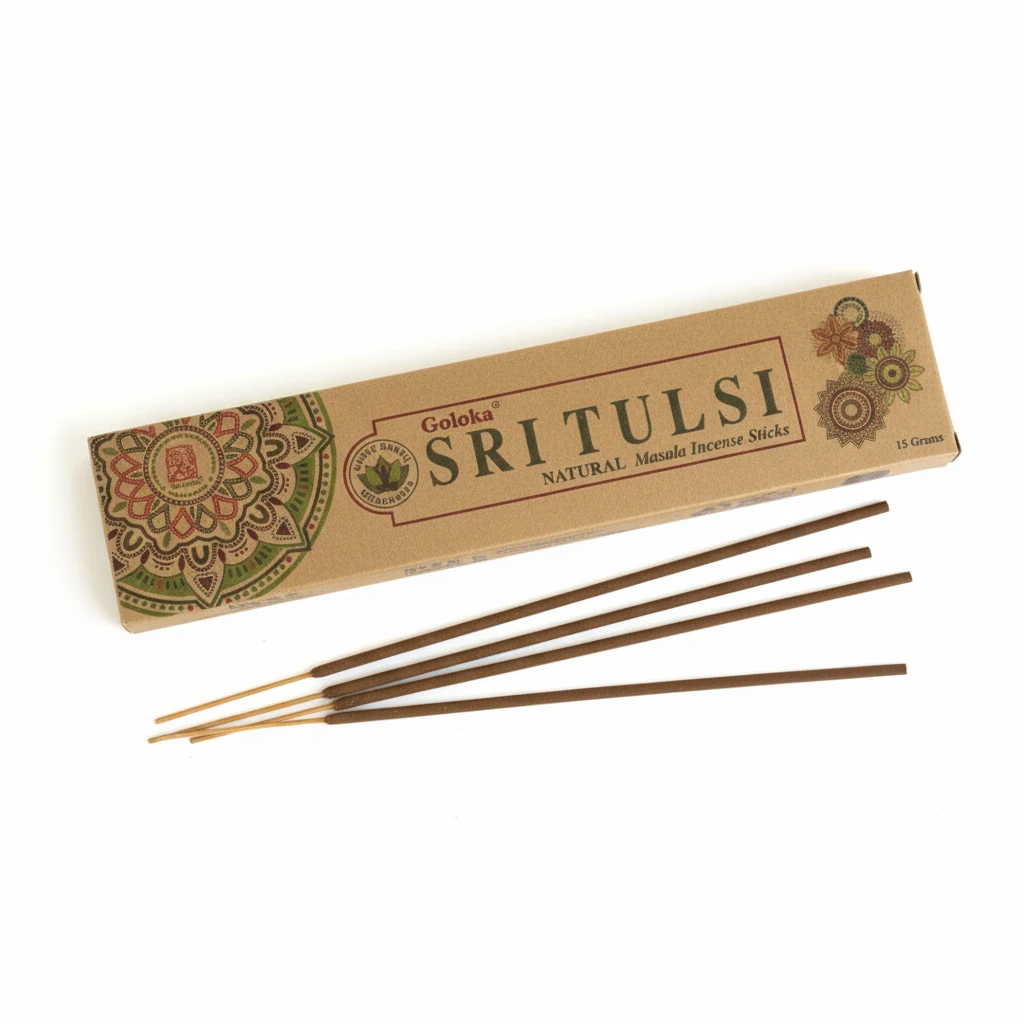 Descubre la purificación y el equilibrio espiritual con nuestros inciensos Goloka Sri Tulsi. Fabricados con métodos tradicionales, estos palitos de masala natural infunden tu espacio con las notas sagradas de la albahaca sagrada, promoviendo la claridad y la serenidad en cada momento de meditación o relajación.