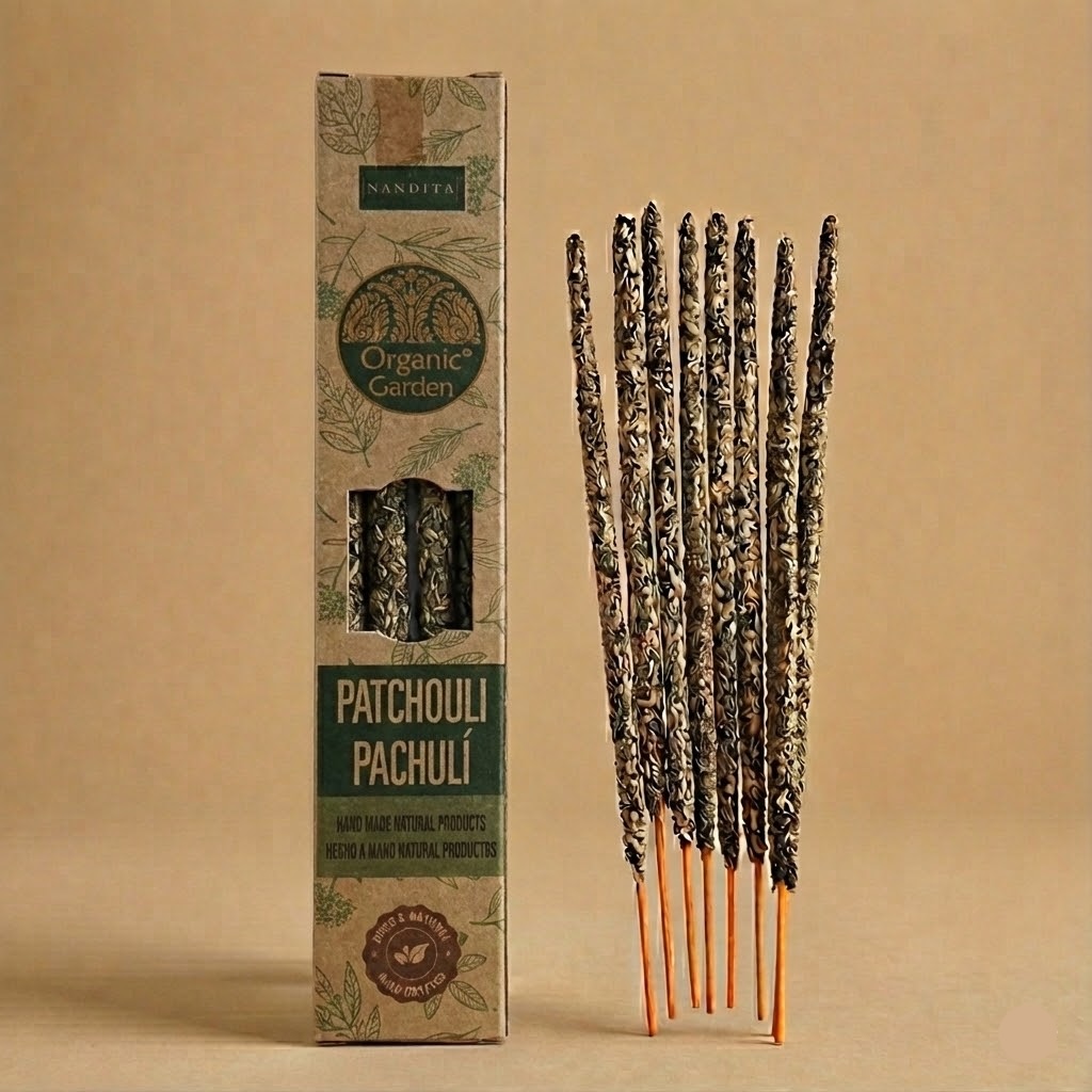 Incienso Nandita Organic Garden Pachulí – Aroma Terroso y Exótico